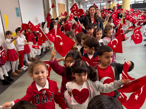 Anaokulu öğrencilerimiz, bando eşliğinde Türk bayraklarıyla okul içinde marşlar söyleyerek yürüyüş yaptı ve Cumhuriyet’in 102. yılını kutladı.