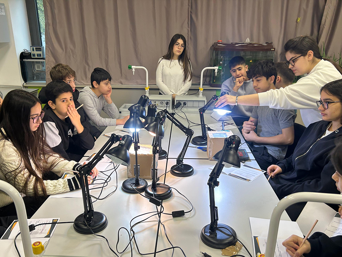 “Fikirden Projeye” Kulübümüzden bir grup gönüllü öğrenci, “Eko-Enerji Kaşifleri” ve “Döngü” adlı iki farklı atölye tasarladı ve öğrenci merkezli istasyon deneylerinde Cemil Türker Ortaokulu’ndan öğrencilerine rehberlik etti.