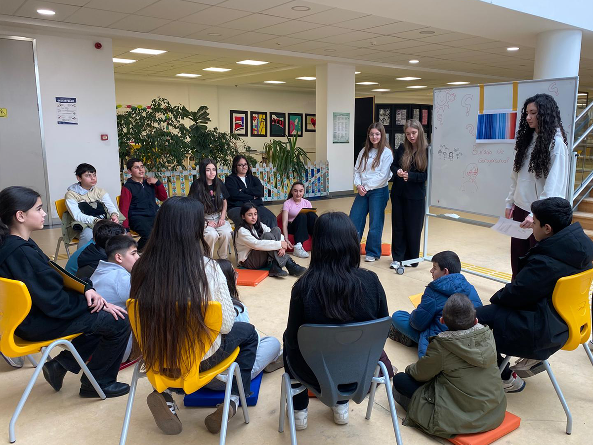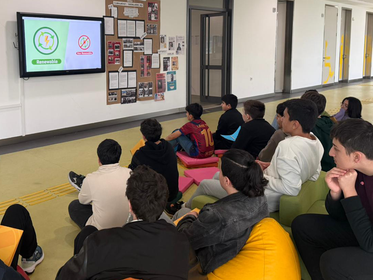 Çocuklarla Felsefe Atölyesi kapsamında düzenlenen etkinlikte öğrenciler, iklim değişikliği ve temiz enerji kavramlarını düşünme, sorgulama ve tartışma yoluyla ele aldı. İrem Günhan Altıparmak rehberliğinde hazırlanan atölyede; Zeynep Yalçın (10GIB), Leyla Duru Murtezaoğlu (10FIB), Ezgi Yıldırım (10GIB) ve Esila Ural (10EIB) görev aldı.