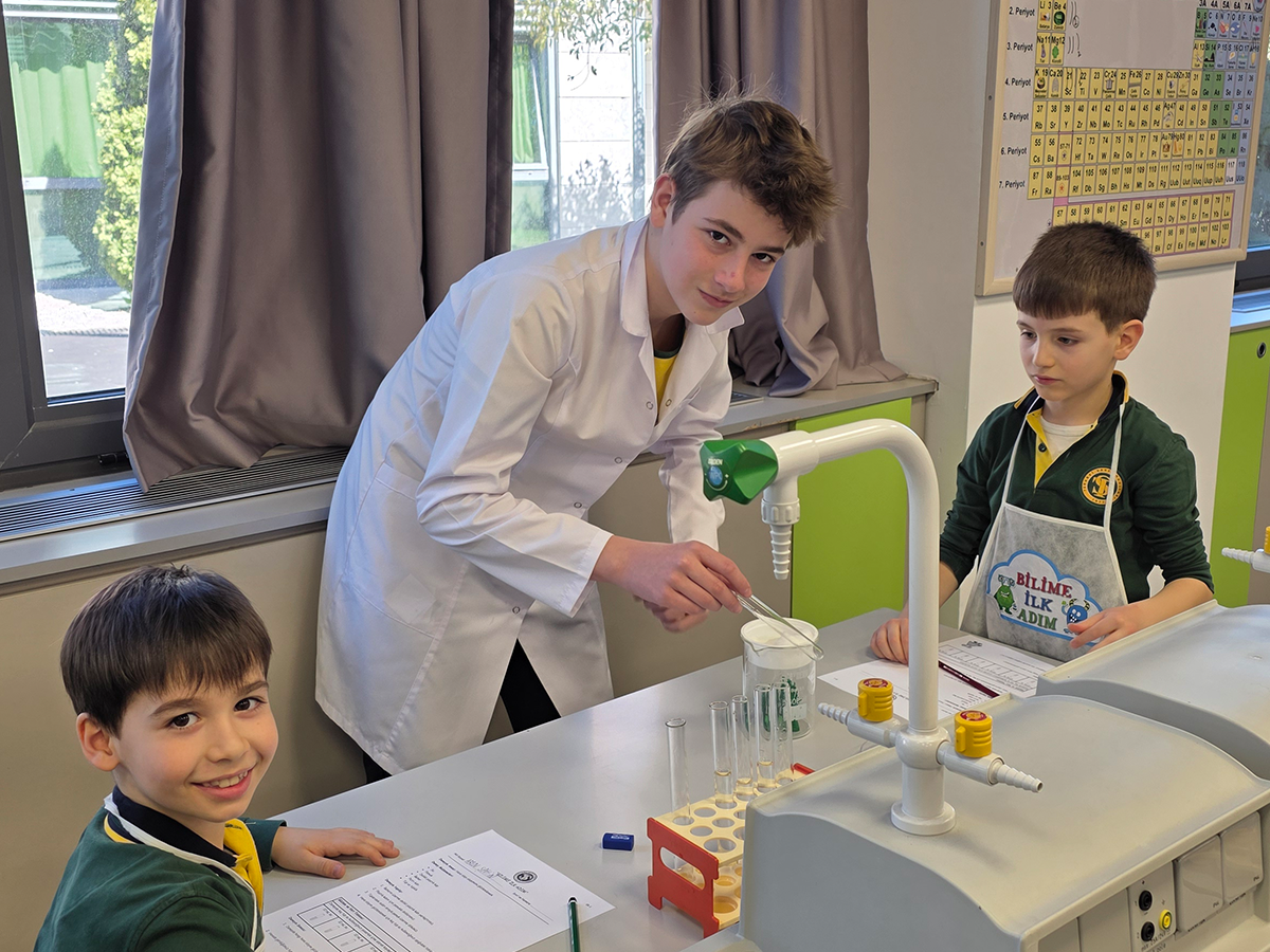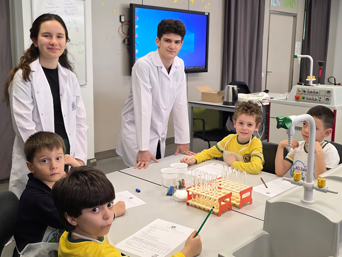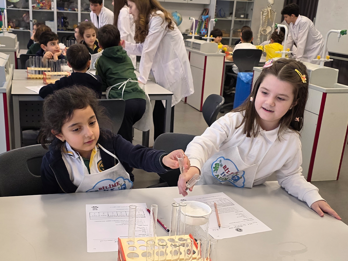 Her iki yerleşkemizde ilkokul 1. sınıf ve ortaokul 8. sınıf öğrencilerimizin birlikte katıldığı “Bilime İlk Adım” etkinliği ile 1. sınıf öğrencilerimiz ilk kez laboratuvar ortamında bilimsel bir çalışmanın basamaklarını deneyimledi.